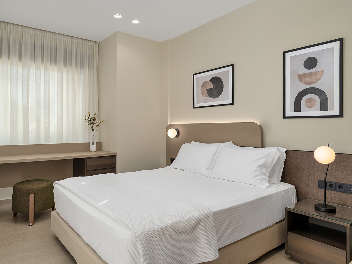 At Palm View Suites, every element of your stay is designed with intention. The architecture, brought to life by a renowned designer, reflects the simplicity and tranquility of the Peloponnesian landscape. Clean lines and sunlit interiors echo the region’s natural beauty, creating a seamless blend of indoor comfort and outdoor serenity.